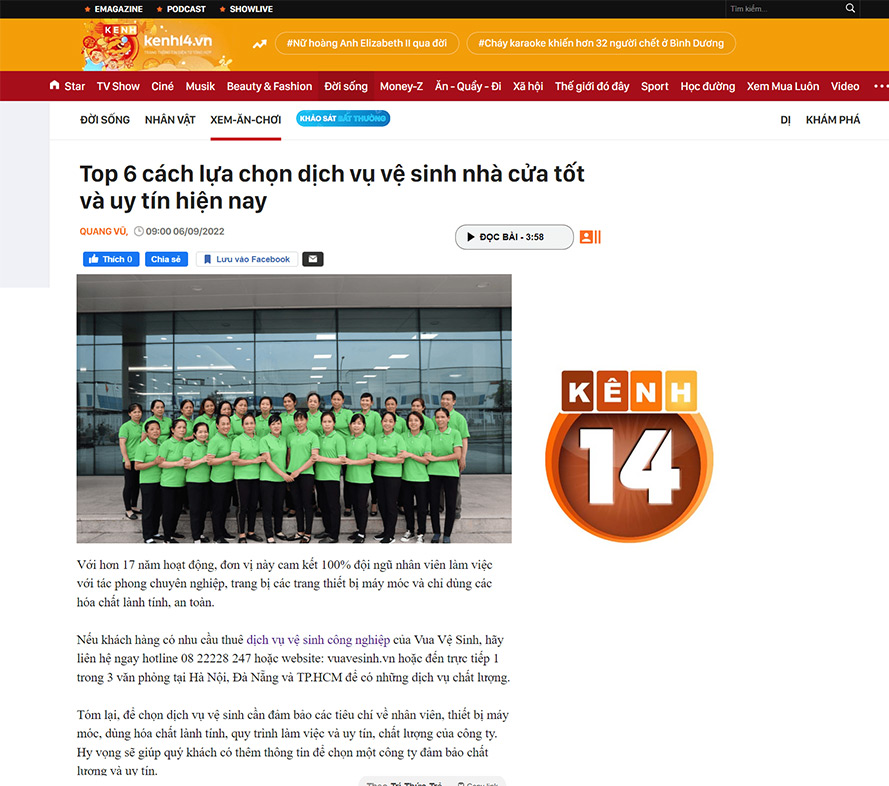 Vua Vệ Sinh thuộc TOP 3 công ty dịch vụ vệ sinh LỚN NHẤT Việt Nam với hơn 17 năm kinh nghiệm ( Since 2005 ) . Vua Vệ Sinh cung cấp dịch vụ vệ sinh nhà , vệ sinh định kì ( daily ) , vệ sinh nhà xưởng , vệ sinh tòa nhà … theo công nghệ tiêu chuẩn Châu Âu phủ sóng 63 tỉnh thành Việt Nam,.. Khảo sát nhanh chóng sau 60 phút và hoàn toàn Miễn phí . Chính sách Bảo hành sau vệ sinh , Cam kết 100% sạch đẹp và chất lượng. Với 3 văn Phòng đại diện tại TP.HCM , Đà Nẵng, Hà Nội cùng Hơn 320 nhân viên toàn quốc của chung tôi sẽ cung cấp tới khách hàng dịch vụ chất lượng tốt nhất .