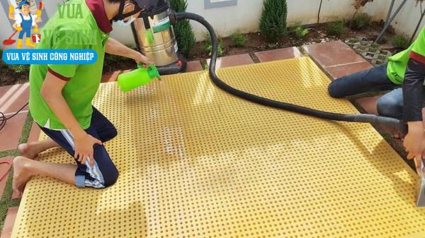 - Bước 2: Sử dụng máy hút bụi để hút sạch cao su chết, bụi bẩn